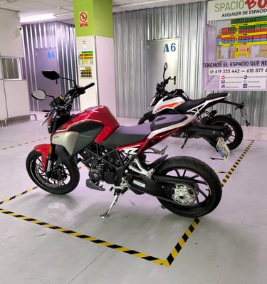 Ofrecemos trasteros y parking para motos en el centro, con seguridad y fácil acceso.